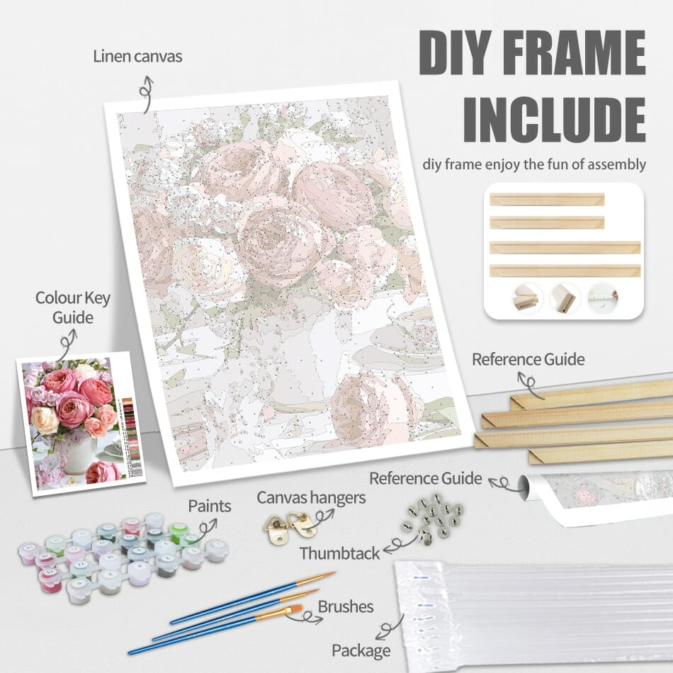 All orders comes with your paint, numbered canvas, and a set of brushes, along with frames to complete your painting. As a result no prior painting equipment or experience necessary to make beautiful paintings.